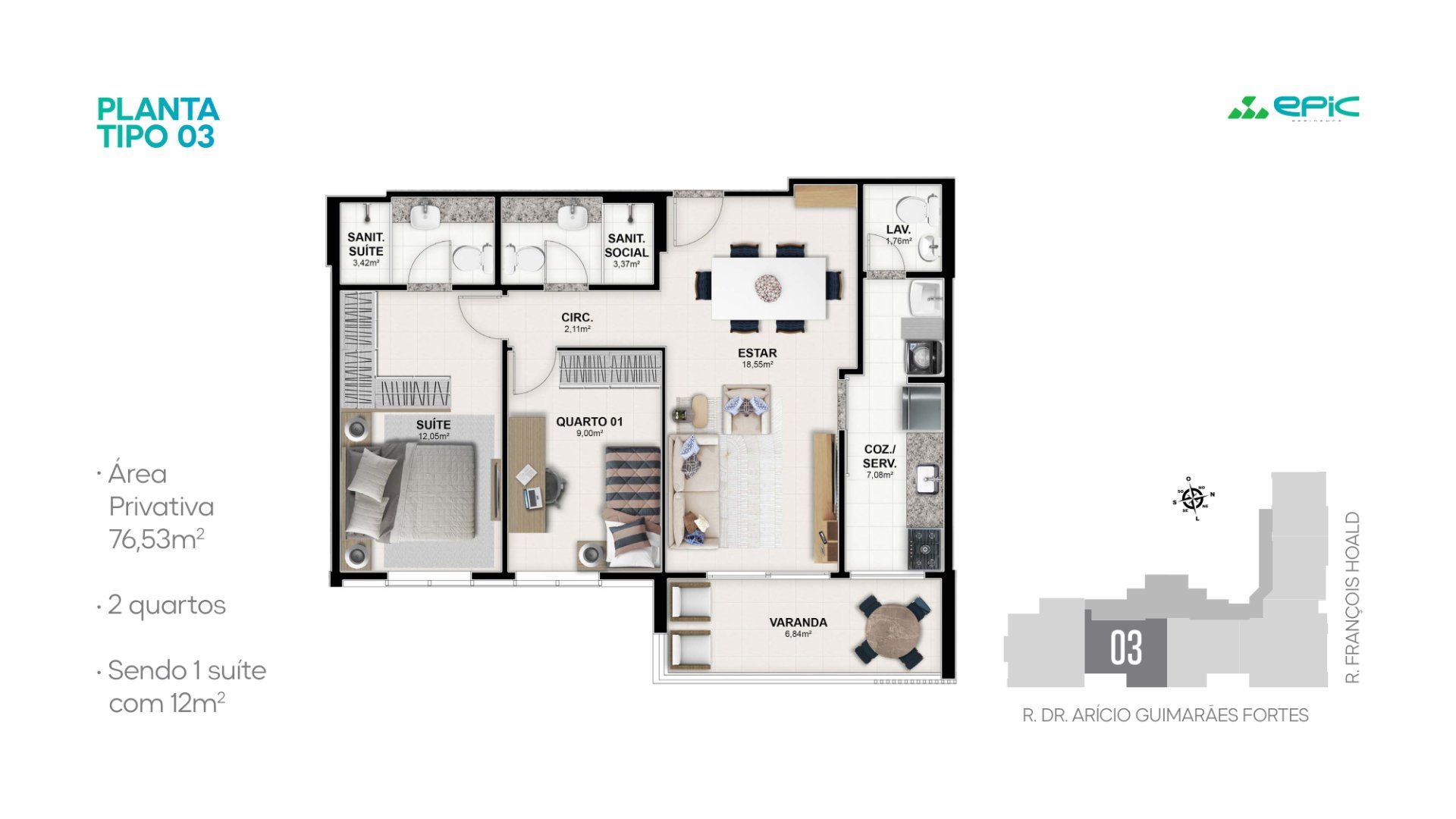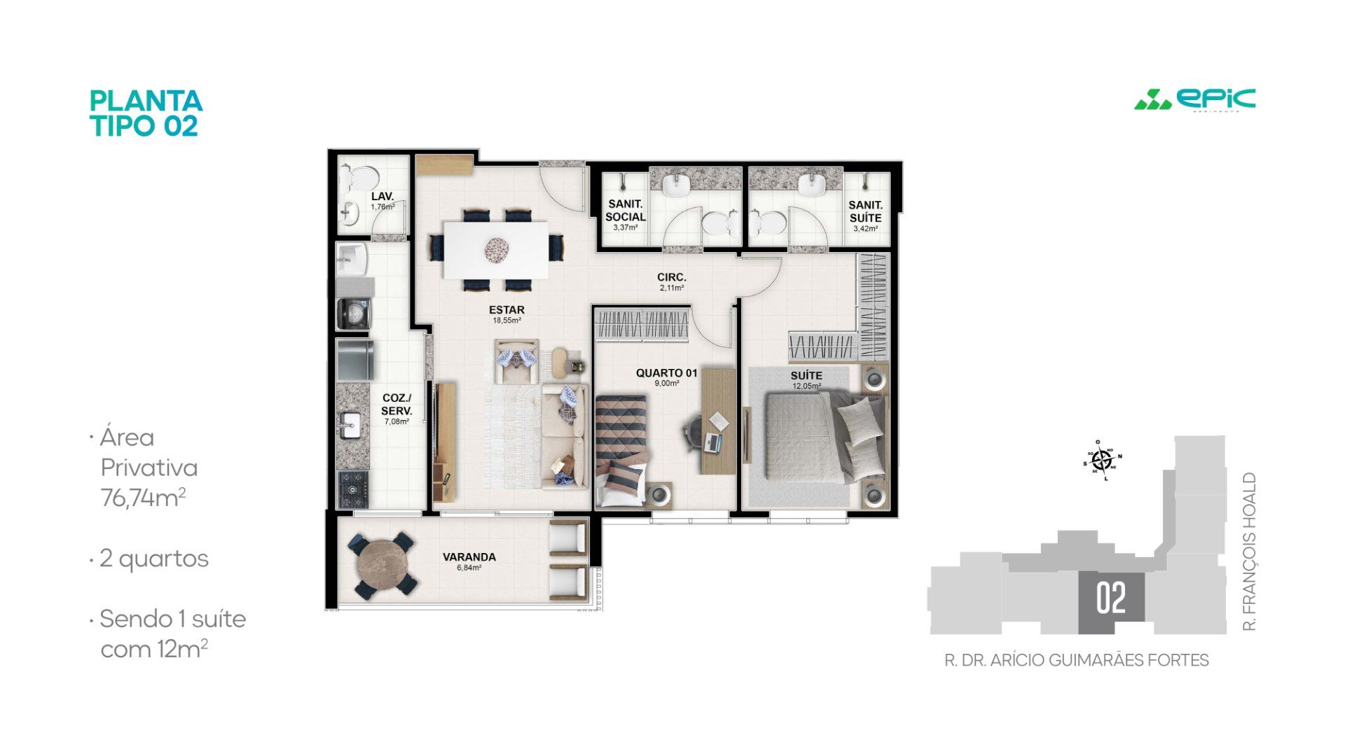 • 2 quartos com 76 m²
